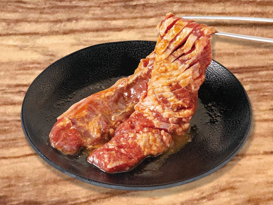 スリットが入っており、まんべんなく焼けます。切り分けて食べるのも焼肉の醍醐味。