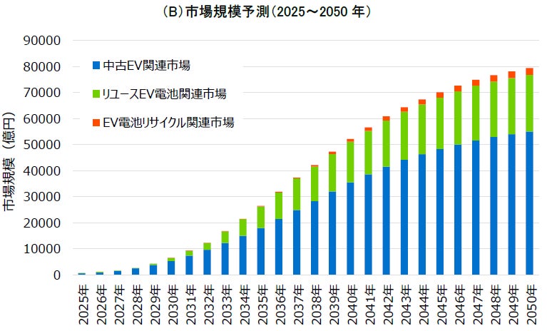 株式会社日本総合研究所(本社: 東京都品川区、代表取締役社長: 谷崎勝教、以下「日本総研」)は、2050年までの期間におけるEV電池の国内サーキュラーエコノミー(循環経済)潜在市場規模を予測しました。その結果および分析・提言を「EV電池サーキュラーエコノミー 8兆円市場のゆくえ」(以下「本レポート」)として取りまとめましたので発表します。