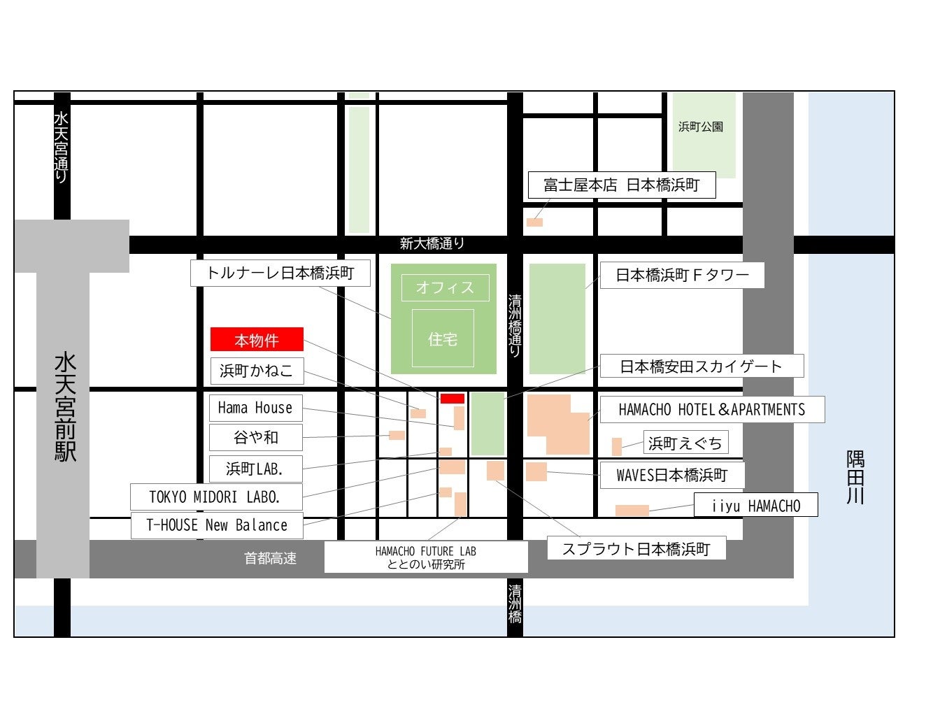 交通 :東京メトロ半蔵門線「水天宮前」駅 徒歩6分、都営新宿線「浜町」駅 徒歩8分、