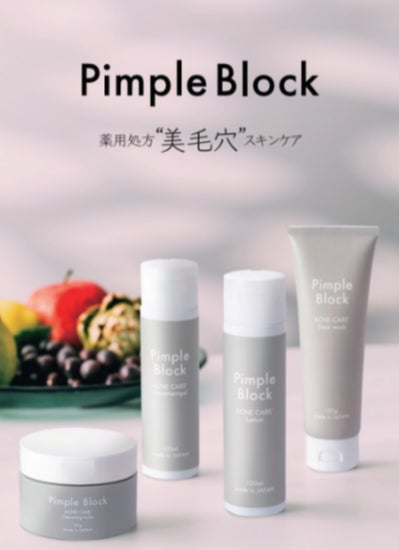 ⽑⽳トラブルが気になる⽅のために、数多くの肌を見つめ続けてきた⾼級美顔器メーカーが肌研究の末⽣み出した“⽑⽳管理(※)スキンケアライン”、それが「Pimple Block」です。昨今、美肌にこだわりを持つ人だからこそ、⽑⽳トラブルに悩み、過剰になりがちなケアが逆に⽑⽳トラブルを加速させてしまっているケースも少なくありません。