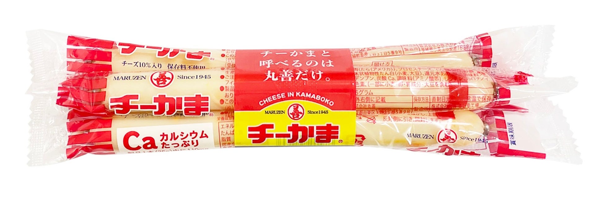 今から55年以上前、当時の研究員が、ドイツのソーセージに関する文献資料から「ソーセージの中にチーズを入れたもの」があることを知りました。この発想に着目し、 日本の伝統的な食品である「かまぼこ」にうまく応用できないかと試行錯誤し、1970年に誕生したのが「チーかま」です。