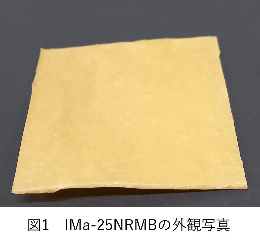 このBiNFi-s/NRマスターバッチは固形ゴムとのドライ混練が容易なため、特別な工程や機器を用いなくてもCNFが均一分散したゴム複合体を製造できます。また、2種類のマスターバッチの組み合わせや添加量を最適化することで、CNF/ゴム複合体の物性を制御できます。BiNFi-s /NRマスターバッチの外観写真を図1に、仕様を表1に示します。