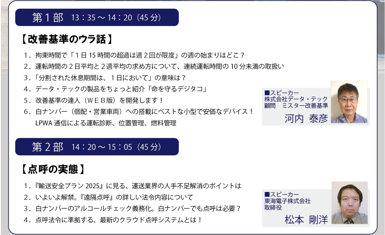 ■詳細はこちらから:【データ・テック&東海電子コラボセミナー】命を守る・安全を確保 ~運送業界のウラ事情~