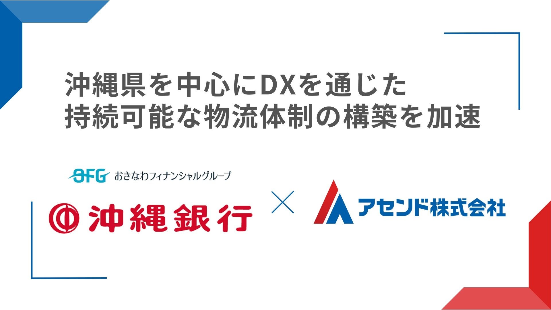 物流の次世代化を実現するアセンド株式会社(本社:東京都新宿区、代表取締役:日下瑞貴、以下「当社」)は、株式会社沖縄銀行(本社:沖縄県那覇市、取締役頭取:山城 正保、以下「沖縄銀行」)との顧客紹介に関するビジネスマッチング業務提携契約を締結したことをお知らせします。