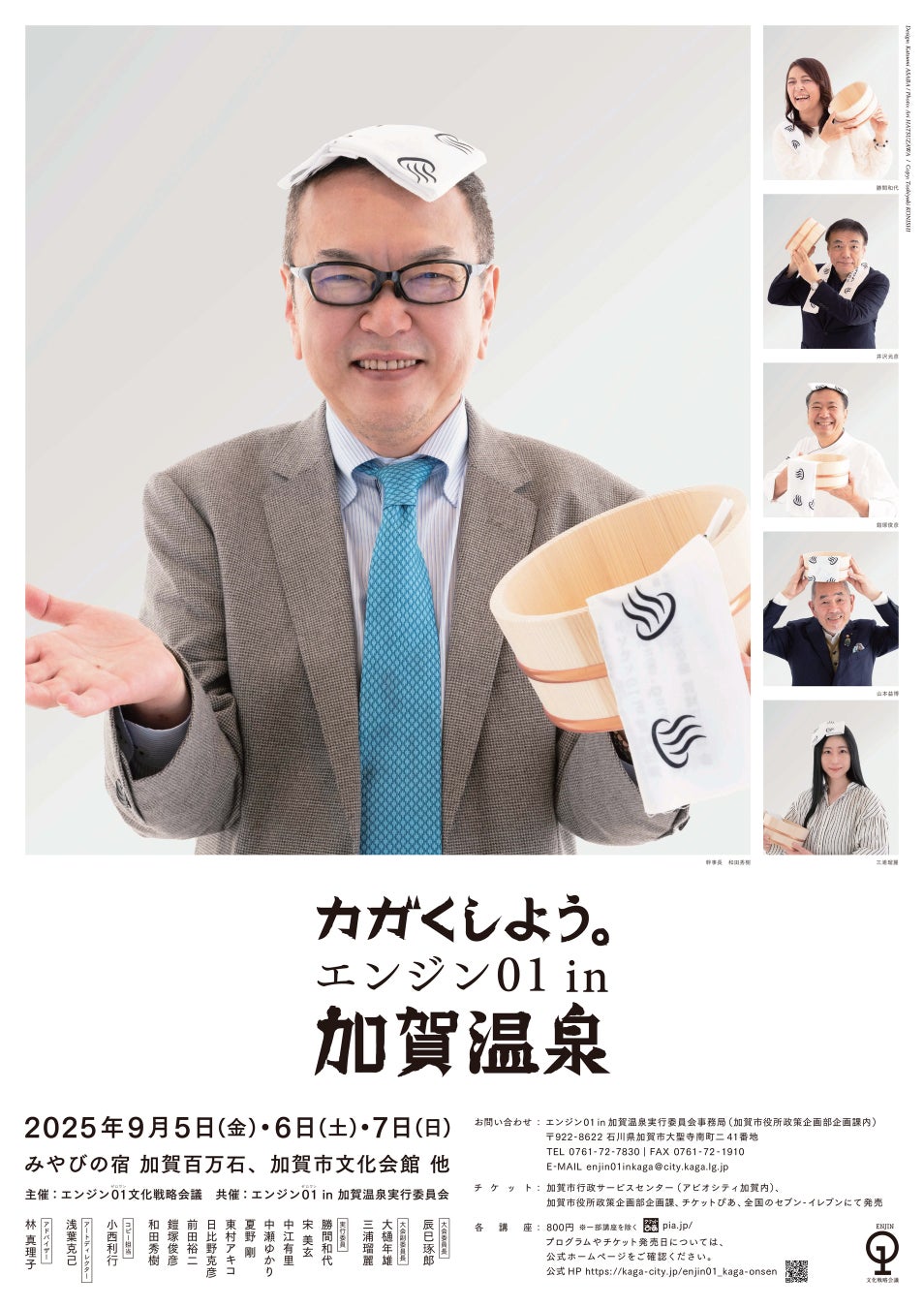 加賀市は、加賀市合併20周年および山代温泉開湯1300年を記念して、地域文化の学び直しを起点とした郷土愛の醸成やブランド発信、観光・地域経済の活性化、能登半島地震への復興支援を目的に、エンジン01文化戦略会議オープンカレッジ「エンジン01 in 加賀温泉」を9月5日(金)~7日(日)に開催いたします。