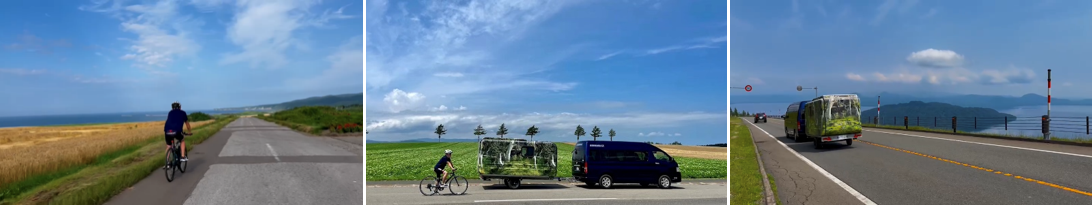 このツアーは、絶景ポイントがあるエリアまではサイクルトレーラー付きの車両で移動し、現地でサイクリングを楽しんだ後、次のポイントへと移動して、風光明媚な場所でのサイクリングを複数箇所楽しみながら周ります。各サイクリングポイントでは、車両が並走・待機していますので、その日のコンディションに合わせて自転車での走行距離を調整するなど、今まで絶景まで行く距離的な問題などからサイクリングを敬遠されていた方や、家族間の体力差を理由にファミリーサイクリングを諦めていた方でもお気軽に参加していただけます。さらに、途中立ち寄る道の駅では、ご当地スイーツやお土産を購入することもでき、移動の負担軽減と周遊の楽しさを両立させた、まさに「いいとこどり」のサイクリングツアーです。