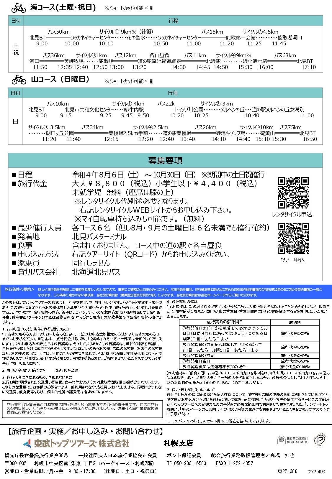 ツアー設定は8月6日から10月31日までの土日祝日出発の日帰りで、旅行代金はお1人様8,800円(小学生以下のお子様は4,400円)、最少催行人数は6名です。