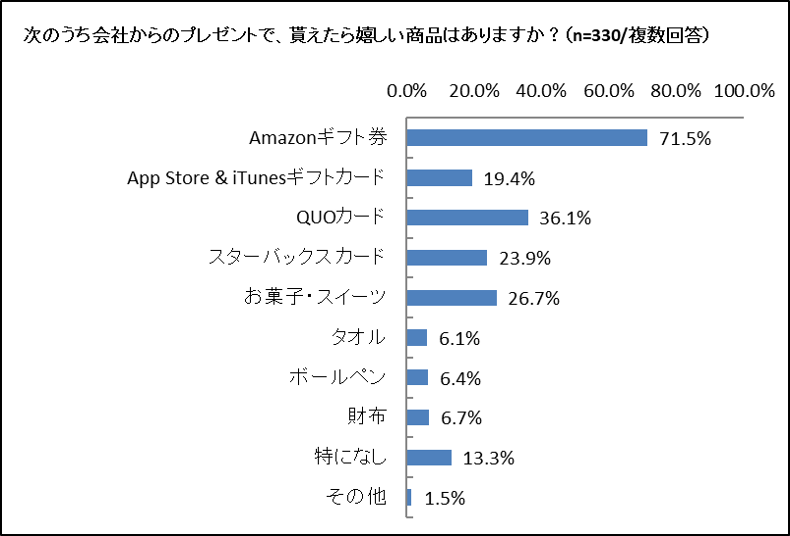 ・会社からのプレゼントは「ギフトカード」が人気