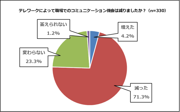 ・テレワークで職場でのコミュニケーションが減少した人は7割超