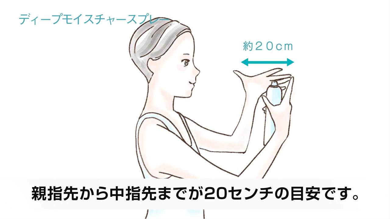 ディープモイスチャースプレーを使用する際の、肌から離す間隔は特にこだわりました。ご自身の指尺でご確認いただけるよう目安をご提案しています。