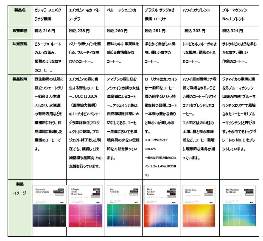 『UCCスペシャルコレクション』シリーズは、コーヒーの産地や風味にこだわって選んだコレクションです。UCCがJICA(国際協力機構)の取り組みに参加し、技術指導や品質向上の支援を行った「エチオピア モカ ベレテ・ゲラ」をはじめ、カフェイン含有量が一般的なコーヒー豆の約半分という特徴を持つ「ブラジル サンジョゼ農園 ローリナ」など、UCCだからこそご提案できる6種を展開します。