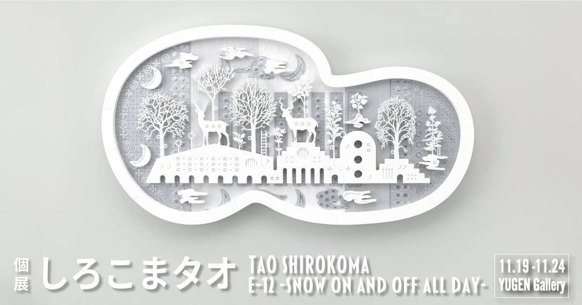 YUGEN Galleryにて2022年11月19日(土)~11月24日(木)の期間に開催した、しろこまタオの 個展「e-12 -snow on and off all day-」