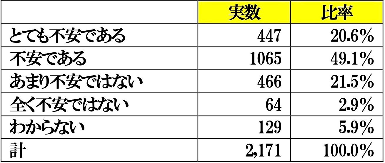 ▶️ とても不安である(20.6%)、不安である(49.1%)を合算