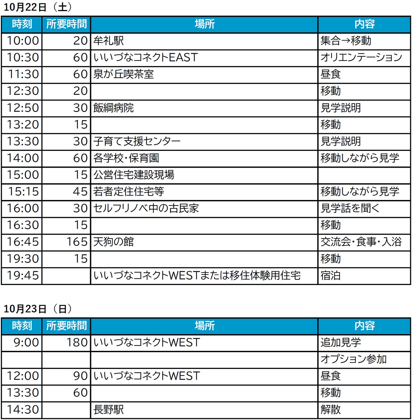 1泊2日(2022年10月22日(土)~23日(日))