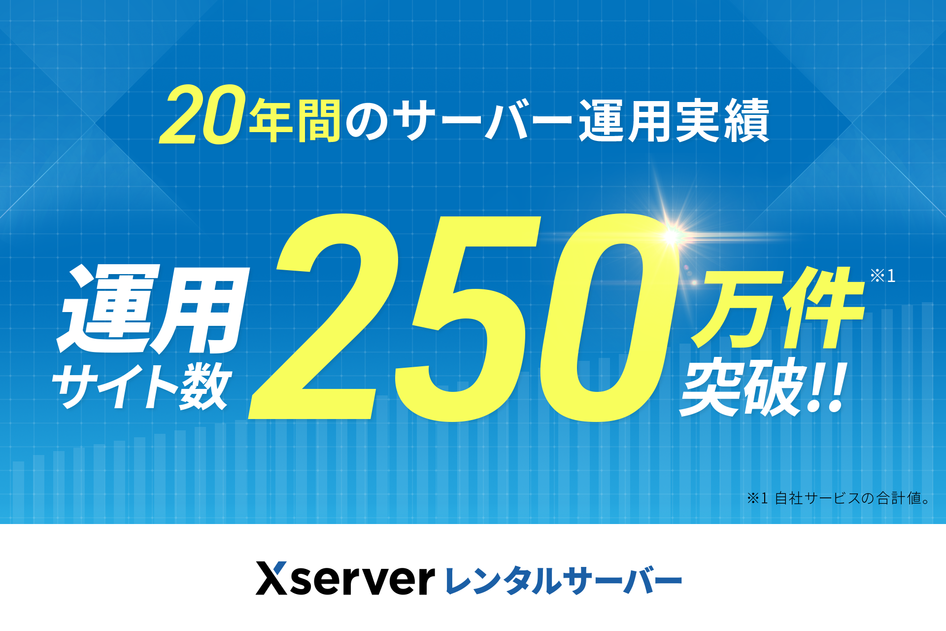 国内シェアNo.1(※1)のレンタルサーバー『エックスサーバー』をはじめとした当社提供サービスにおいて、運用サイト数が250万件を突破いたしました(※2)。