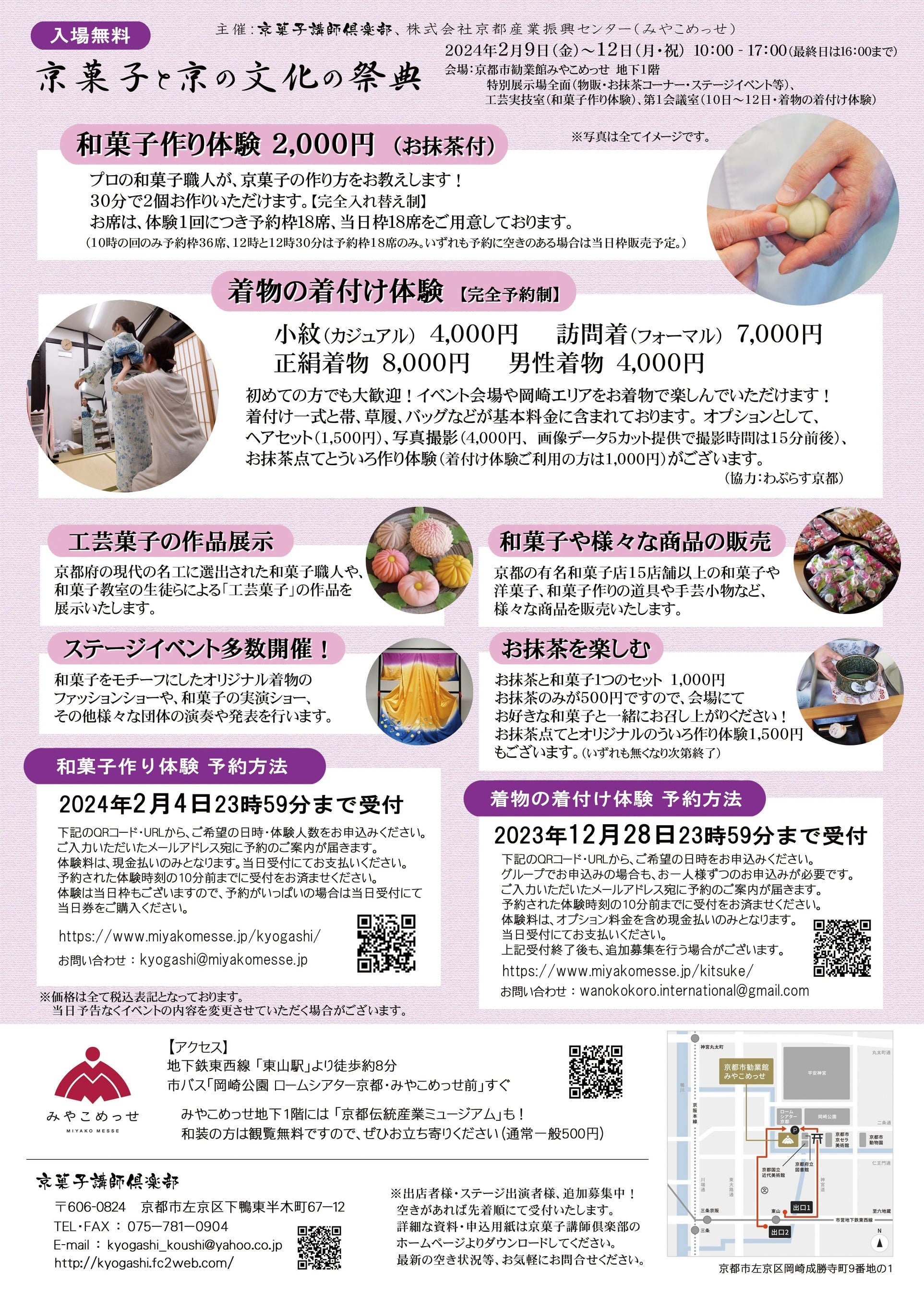 ◎ 「和菓子作り体験」に関するお問い合わせ先: kyogashi@miyakomesse.jp