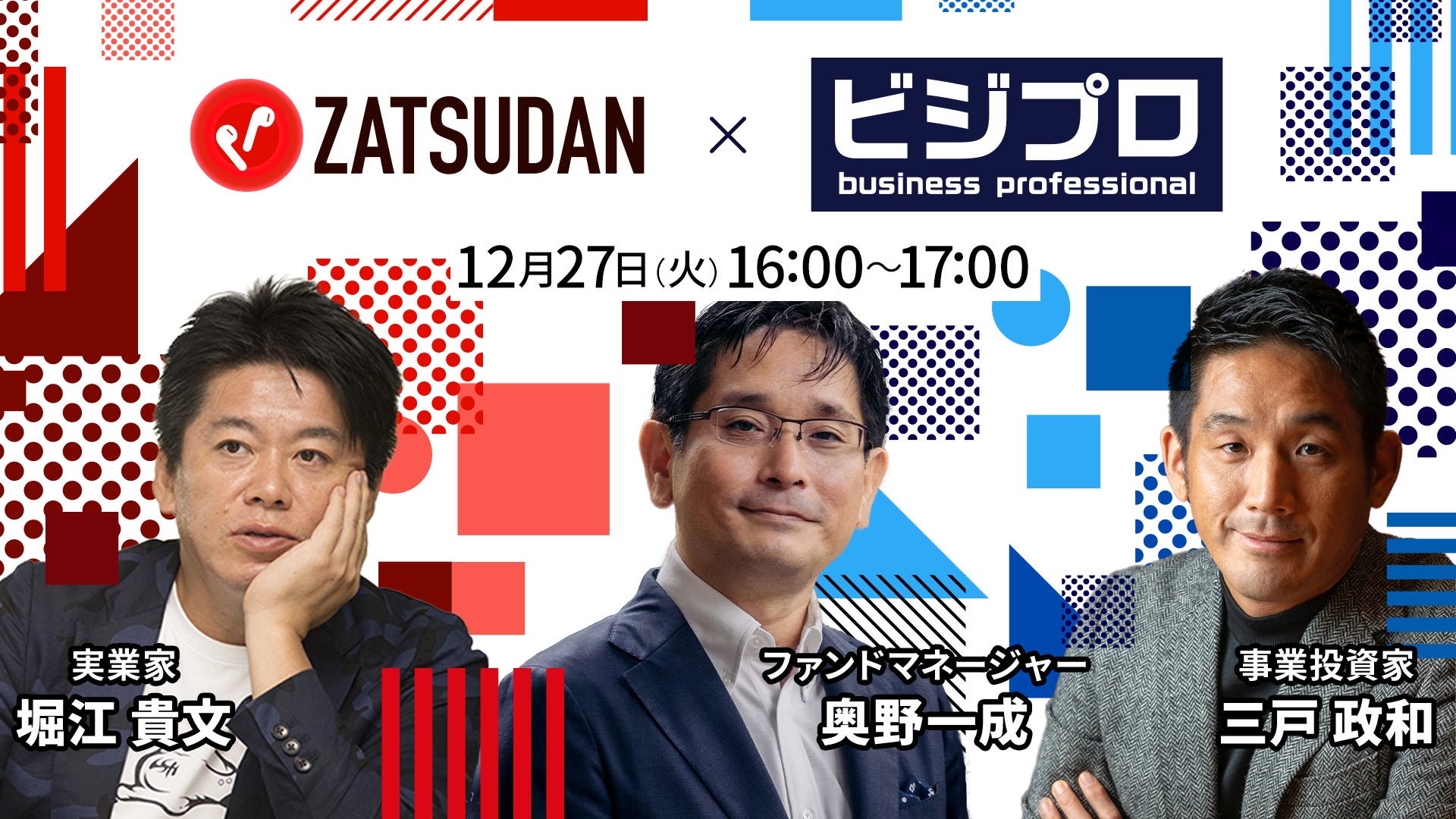 【ZATSUDAN】オンラインイベントのお知らせ(堀江 貴⽂⽒ × 三⼾ 政和⽒ × 奥野 一成氏)