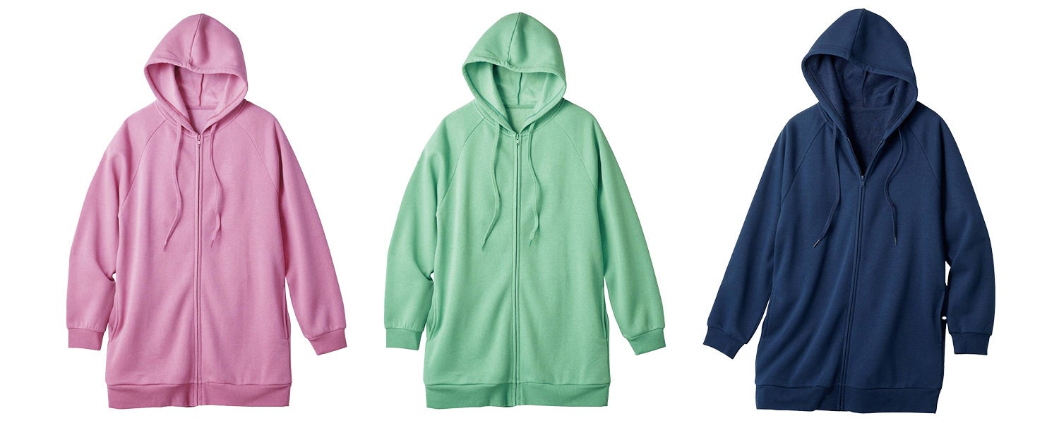 ☆少し長めのパーカーなので起きぬけに羽織りやすい。色が優しくて肌ざわりも滑らか、暖かさも程よいです。(40代)