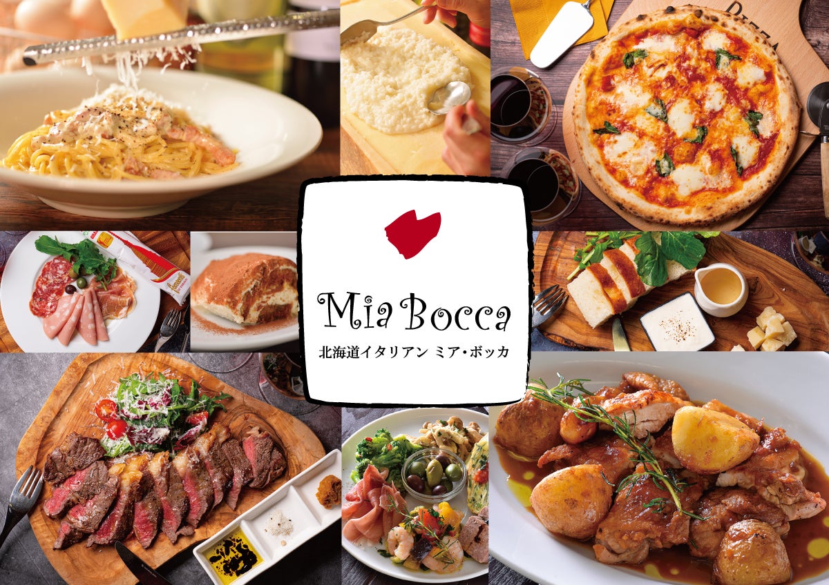 世界に誇る北海道食材をメインに本格イタリア料理をリーズナブルに楽しめる「北海道イタリアン ミアボッカ」。北海道小麦100%の生地を焼き上げる自慢のピッツァや、原料段階から厳しく管理されたデュラム小麦とセモリナと、豊富で良質な水から作られアルデンテが効いた「グランフィーロ」をつかった種類豊富なパスタ、前菜や、サラダ、リゾットからお肉料理まで楽しめるお店です。あなたの近くの北海道物産展と思わせる厳選した北海道食材を使い、皆様へ食で元気をお届けしています。