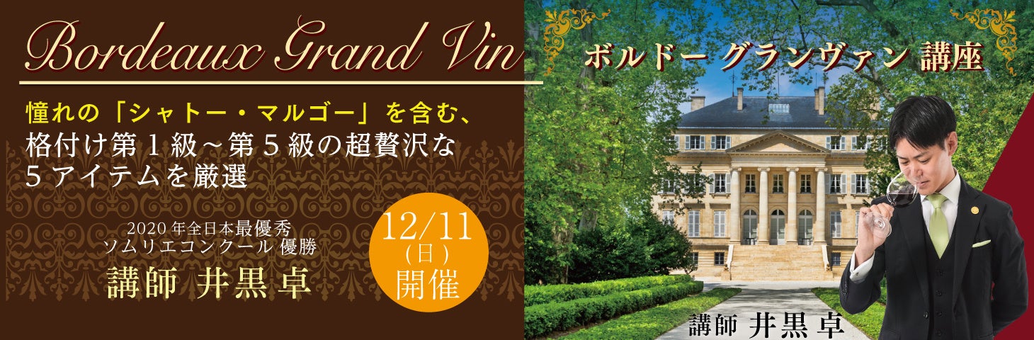三ツ星フレンチのシェフソムリエと学ぶ! 「12月11日(日)開催ボルドー グラン・ヴァン講座」