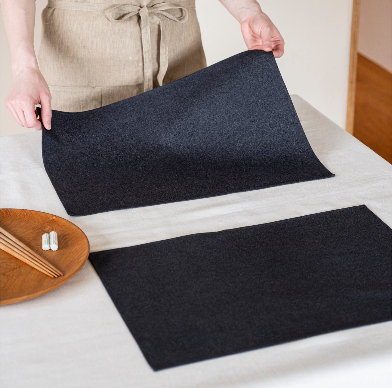 福岡の名産品 小倉織の生地を使用した上品なランチョンマットが新登場 【茅乃舎ノ道具】布折敷(ぬのおしき) 霜降小倉(しもふりこくら) 紺・灰 2023年8月16日(水)より新発売