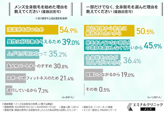 今回の調査結果により、男性の全身脱毛を始めた理由やその満足度が明らかとなりました。