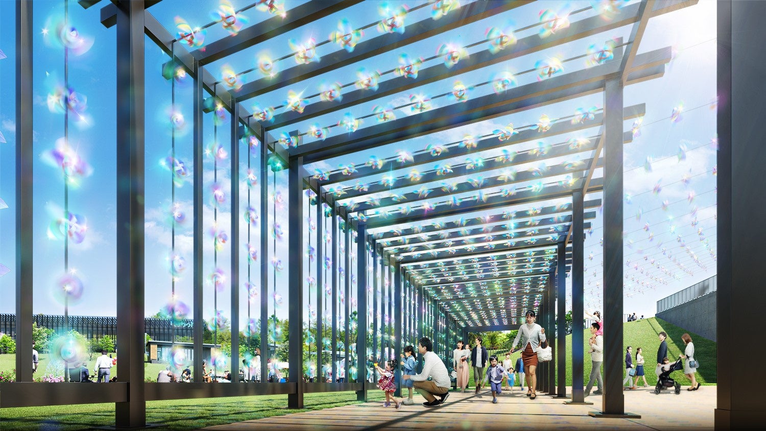 Fビレッジに1,500 個を超える風車のインスタレーションが登場。風車は光の角度によってオーロラのように色が変化して見える特殊フィルムを使用しており、太陽の光によって光の揺らめきが変化します。19:00~21:00まではスペシャルライトアップを実施。日中とは異なる色の変化をお楽しみください。