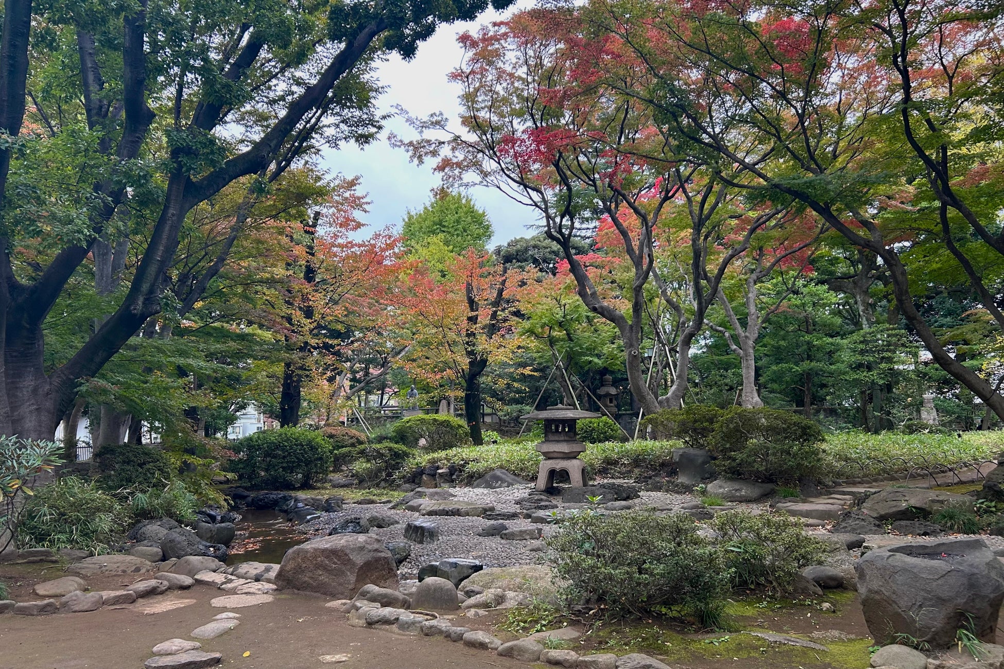 高橋是清翁記念公園は、青山一丁目駅からすぐの場所に位置し、日々多くの人々が訪れる公園です。都心にありながら日本庭園の趣を持つ緑地で、紫陽花や紅葉の名所としても知られ、四季折々の自然を楽しむ人々でにぎわいます。