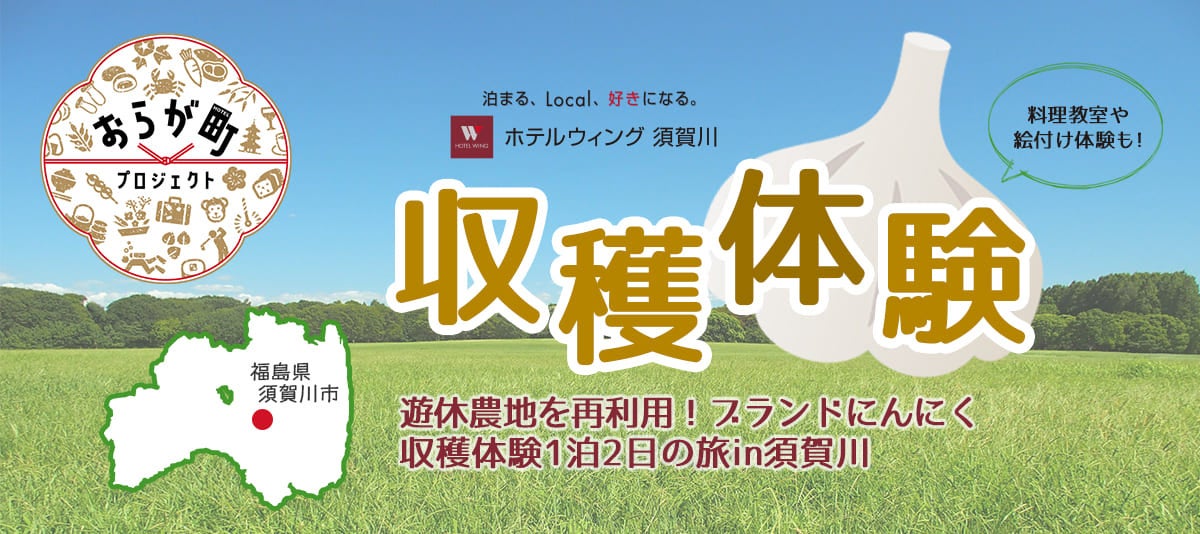 ホテルウィングインターナショナル須賀川(福島) 6/24~1泊2日で開催【おらが町プロジェクト】遊休農地を再利用!ブランドにんにく収穫体験1泊2日の旅in須賀川