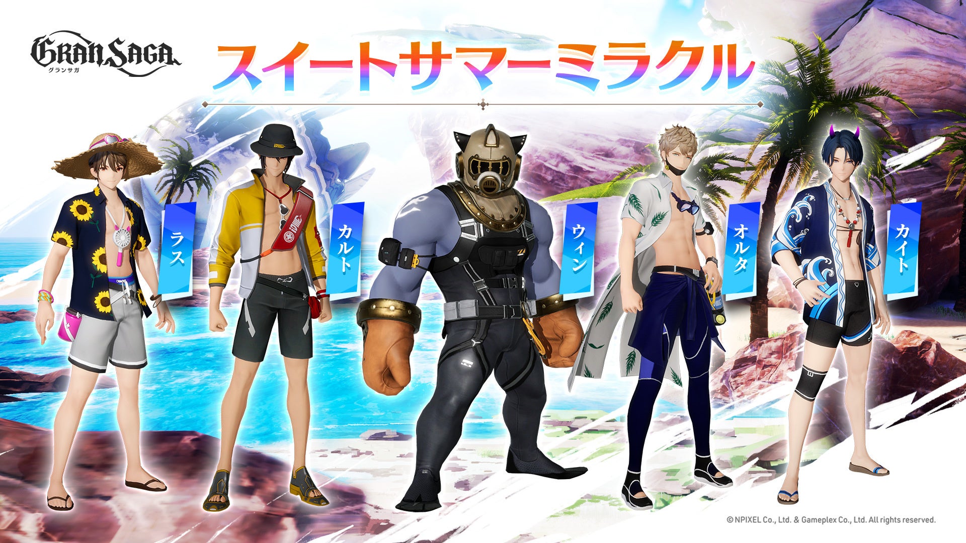 株式会社NPIXELは、クロスプラットフォーム対応のシネマティックオンラインRPG 「グランサガ(Gran Saga)」(運営:株式会社GAMEPLEX)の第二弾となる夏季限定衣装「スイートサマーミラクル」の販売を本日より開始いたしました!
