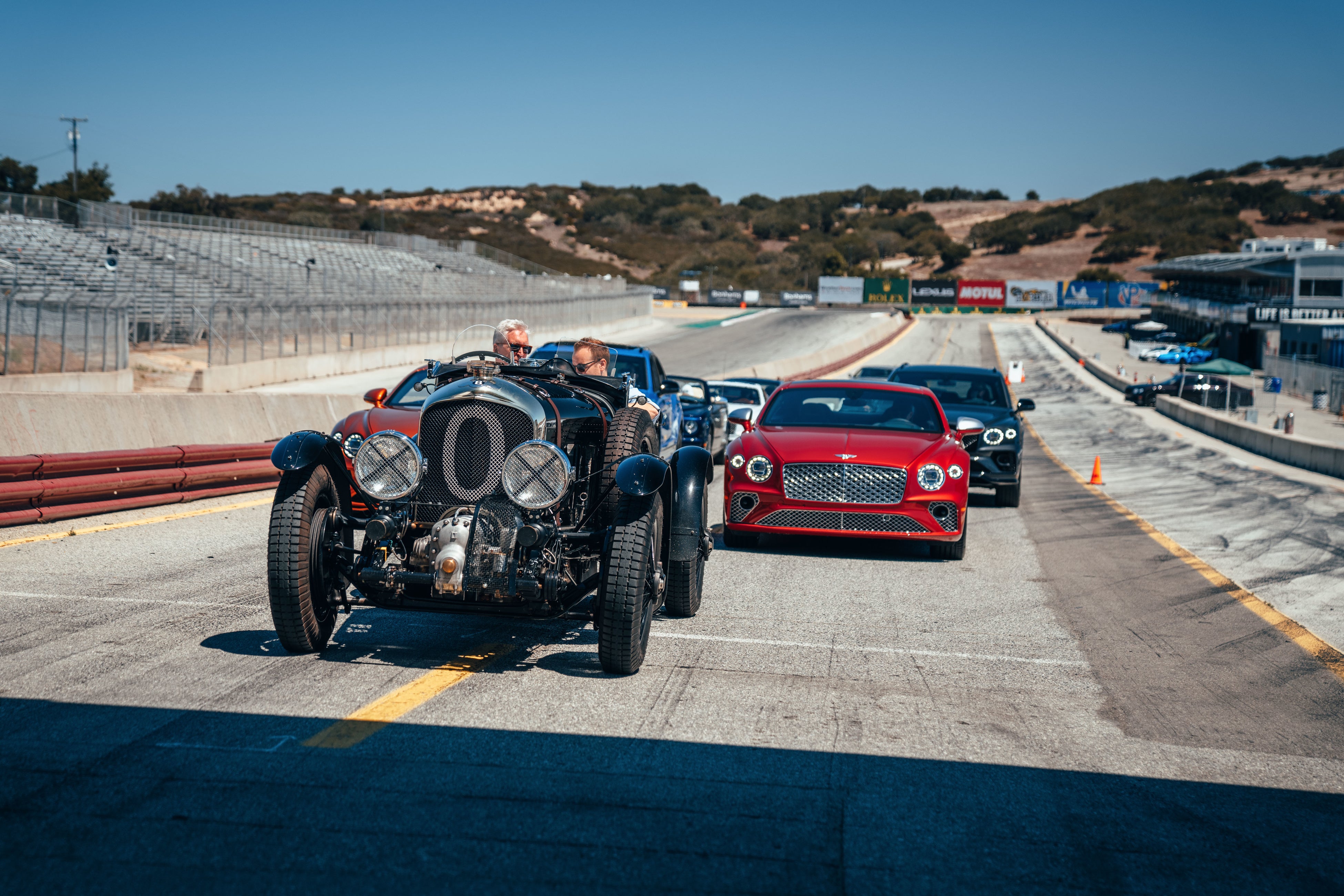 ベントレーの車たちはラグナ・セカに到着後すぐにパレードラップを行いました。パレードの先頭を走ったのはベントレーマリナーのブロワーコンティニュエーションシリーズの最初の車であるブロワー・カーゼロで、ベントレーの会長兼CEOであるエイドリアン・ホールマークが運転しました。ブロワーにスピード 8が加わり、ベントレーモーターズとル・マン24時間レースの長年の関係を象徴する2台が劇的な出会いを果たしました。