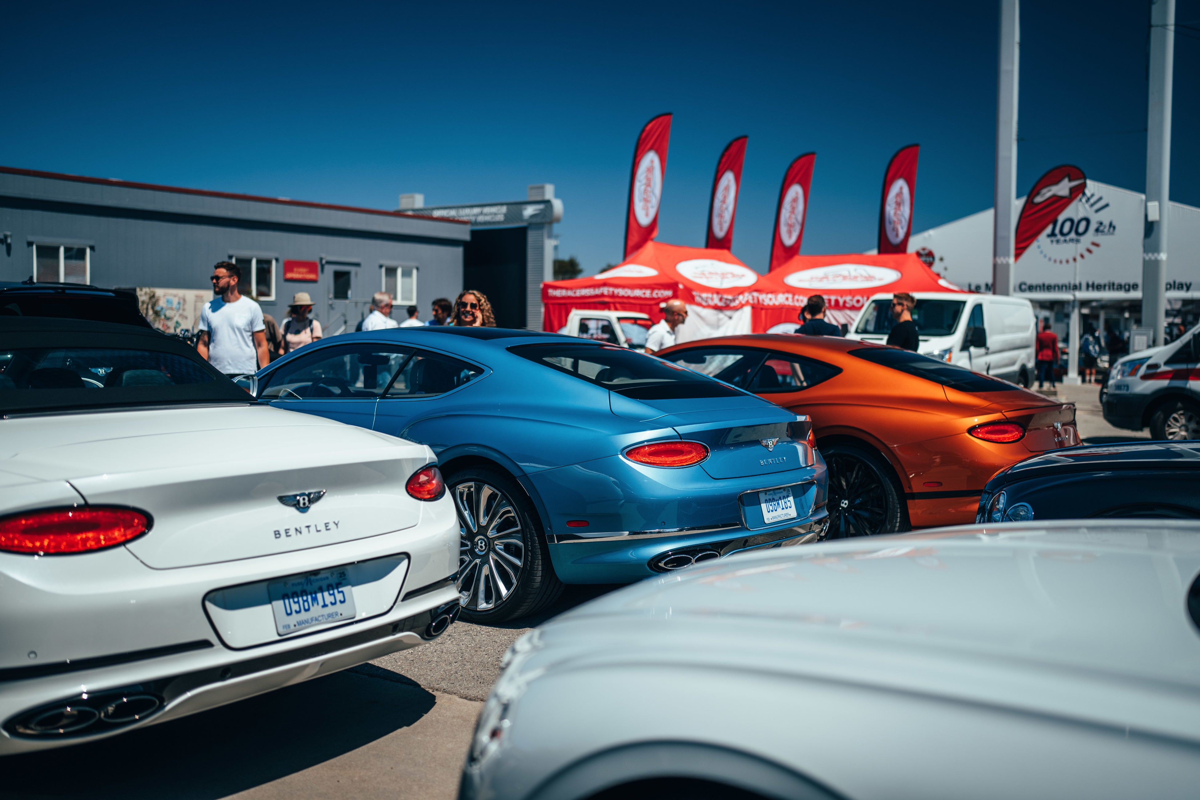 スピード8がコースに出る前に、30台以上の現代のベントレーがロサンゼルスからラグナ・セカに到着しました。ベントレーのお客様とVIPゲストは、美しいアズールのコンバーチブルからベントレーの現行モデルの全車種まで、さまざまな車に乗って2日間にわたり美しいパシフィックコーストハイウェイのルートをゆったりと走破しました。