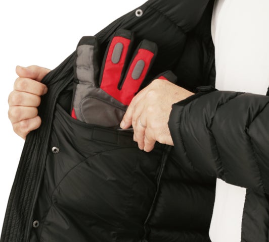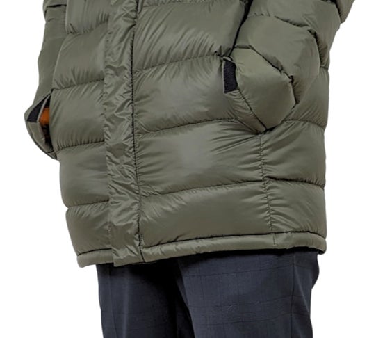 特殊ファスナー仕様で、挿し込みの難しさや脱ぎにくさを解消したロングダウンジャケット