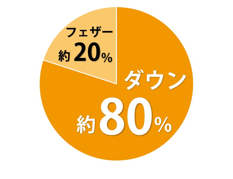 ・約80%のダウン素材と約20%のフェザー素材を使用し、暖かさと軽さを兼ね備える