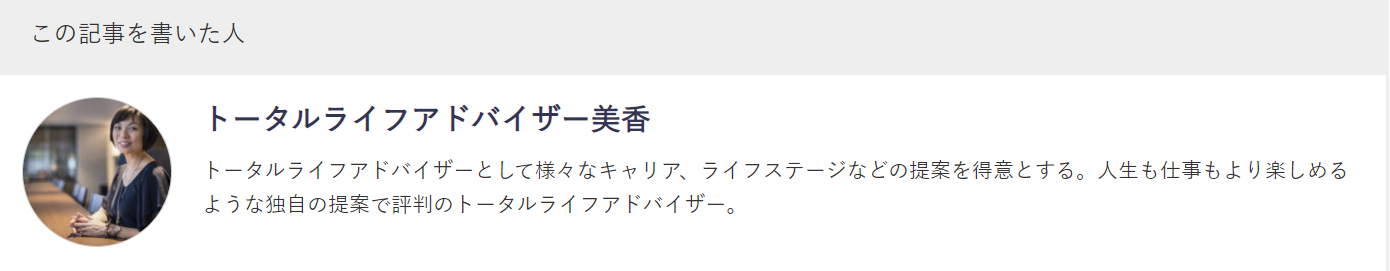 『はじめまして。大人の転職サイト(30代40代50代の転職)で転職コラムや診断を監修作成をしているトータルライフアドバイザー美香と言います。あなたにとって仕事とは何でしょうか?お金を稼ぐための道具?生きるためにはやりたくなくてもやらなくてはいけないもの?どちらも正解だと思いますが、私が仕事に出した答えは「今この一瞬を生きている自分が一番輝くための人生をかけるべき大切なもの」です。