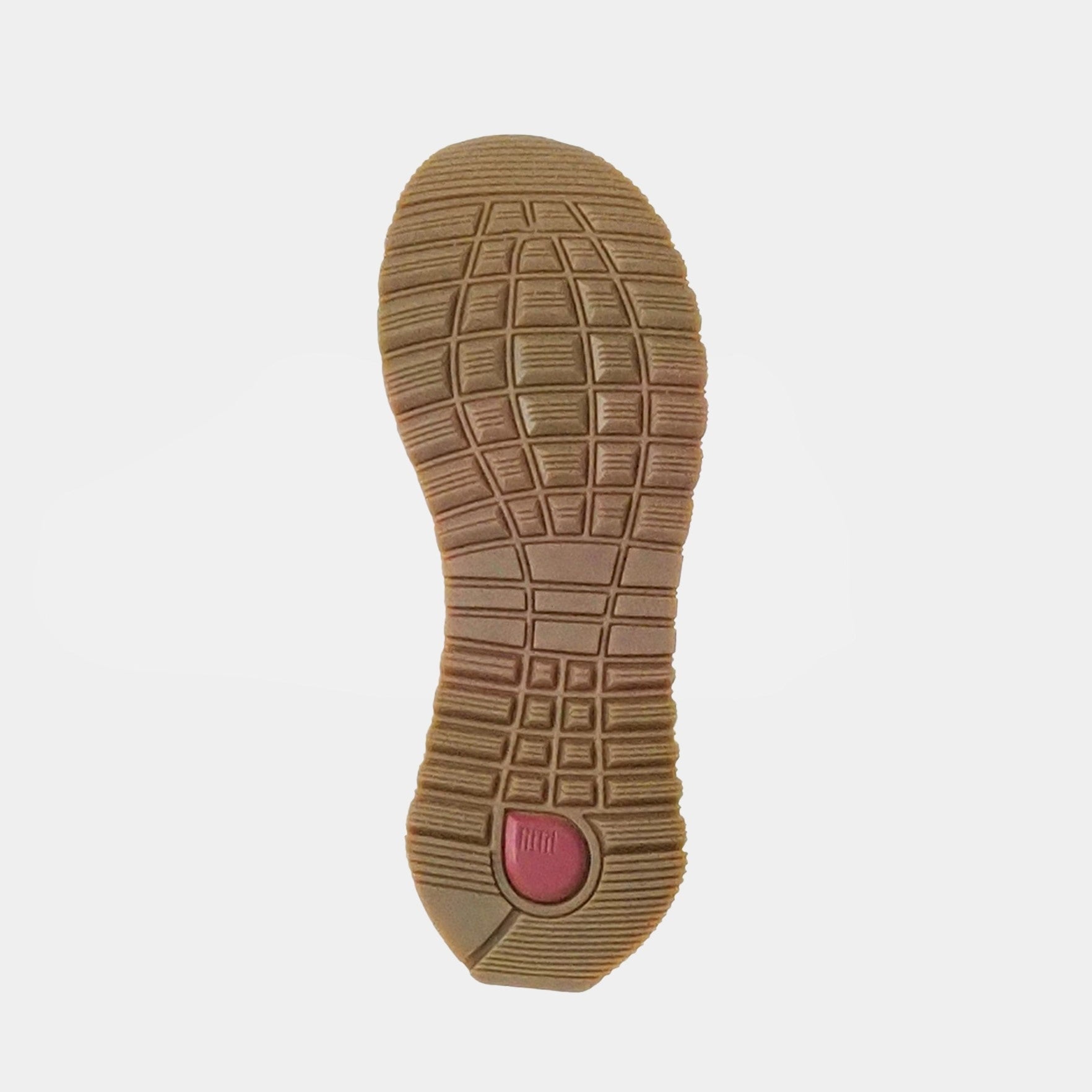 3. ミッドソールには十分に厚みを持たせ、弾むような履き心地に。また、アウトソールの素材には防滑性の高いラバーを採用し、歩行時に地面をしっかり捉えられる、ブロック形状にしています。
