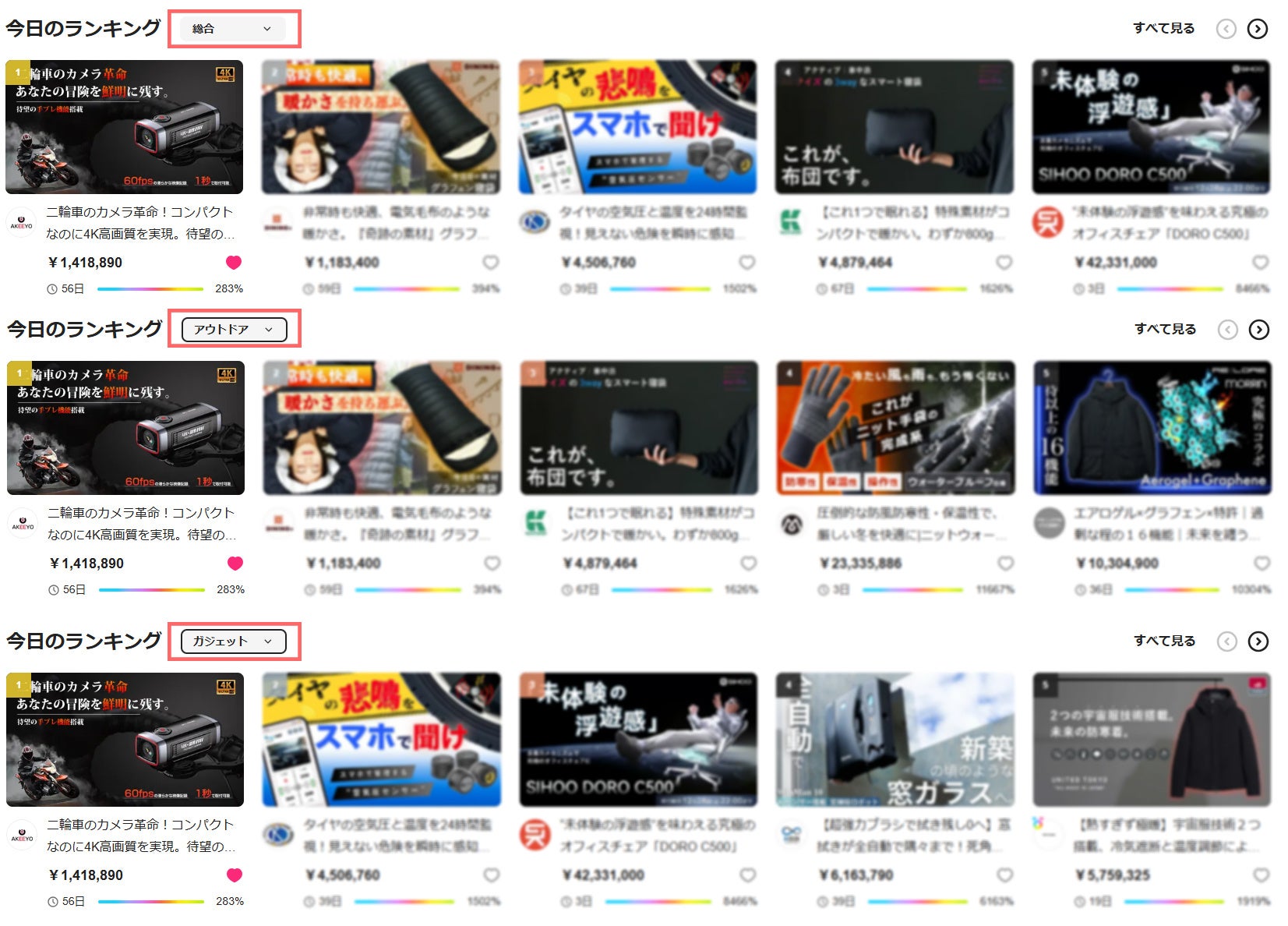 プロジェクト開始からわずか24時間足らずで、Makuakeにて【総合】【アウトドア】【ガジェット】の3カテゴリー全てでランキング1位を獲得することができました!