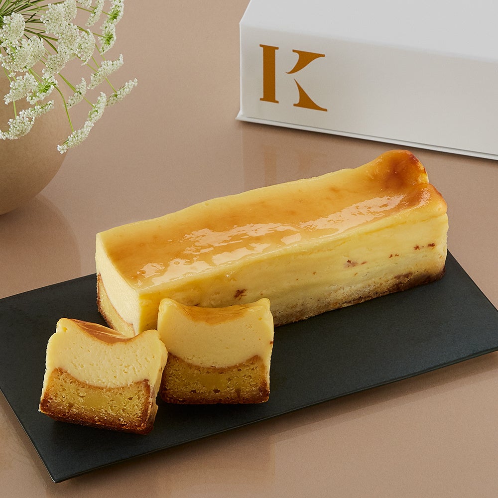 アーモンドとバターをたっぷりと使用したしっとり生地と一緒に食べることで、アーモンドの香ばしさとバターの深みが、テリーヌのような濃厚なチーズケーキと絡まり、まさにプレミアムな美味しさです。