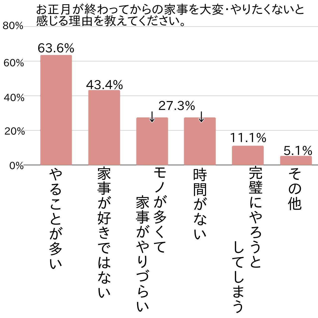 約8割の方が、お正月が終わってからの家事を大変・やりたくないと感じることがあると分かりましたが、どうしてそう感じるのかをアンケートで尋ねてみました。