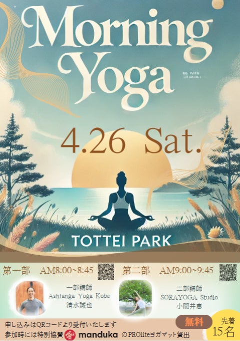 株式会社One Bright KOBE(住所:兵庫県神戸市、代表取締役社長 渋谷 順)は、2025年4月4日(金)~5月3日(土)までの間を「新たな船出を祝う30 Days」をテーマに、「Turning point 30」として、GLION ARENA KOBE(ジーライオンアリーナ神戸)やTOTTEI(トッテイ)内でさまざまなイベントを開催します。その一環で、4月26日(土)はTOTTEI PARKの270度海に囲まれたロケーションをダイナミックに体感いただける「TOTTEI PARK Morning Yoga」を実施します。TOTTEI PARKは、270度を海に囲まれた開放的な空間。神戸ウォーターフロントならではの美しい朝日を浴びながら、心と体をリフレッシュできるウェルネス体験をお楽しみいただけます。イベントでは、世界中のヨガ愛好者に支持されるmandukaのPROliteヨガマットを無料で貸し出しいたしますので、初心者の方でも安心してご参加いただけます。