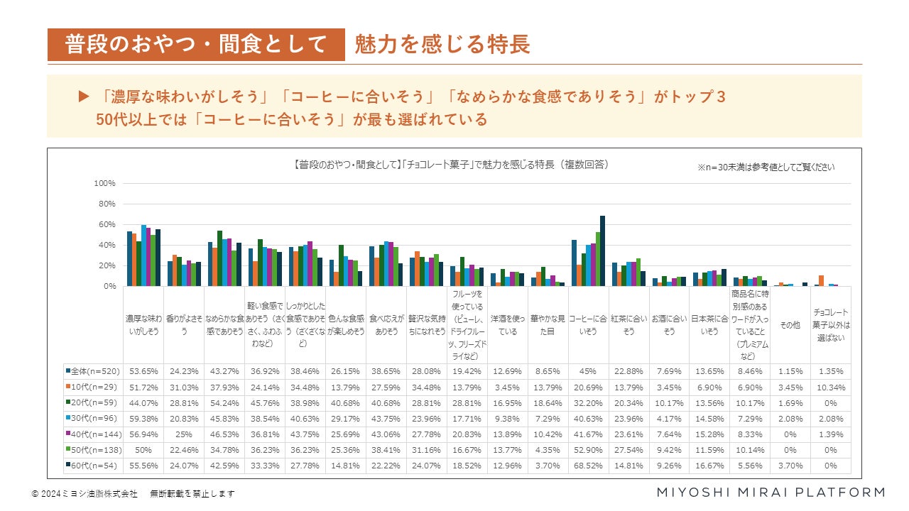 【ミヨシ油脂】チョコレート菓子の独自調査を実施、消費者の8割が「特別なご褒美が欲しいとき」には「濃厚な味わいがしそう」を求めると回答、普段のおやつ・間食で求めるときよりも選択率が26.2ポイント高い