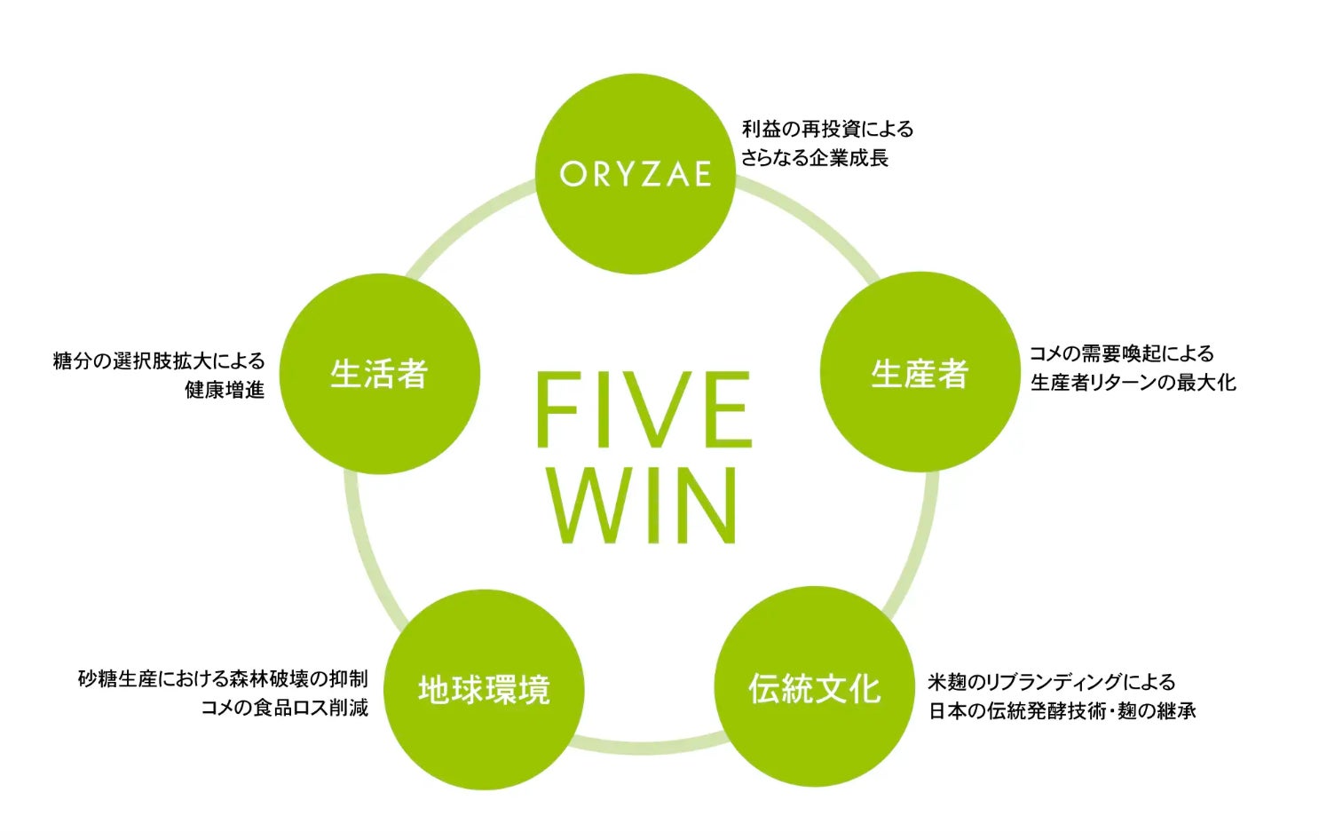 当社の経営理念である「FIVE WIN」は、生活者・生産者・地球環境・伝統文化、企業成長を目指す”五方よし”の実現に向けた価値提供を行っています。発酵技術を駆使して社会課題を解決し、食だけにとどまらないイノベーションを起こしていきます。