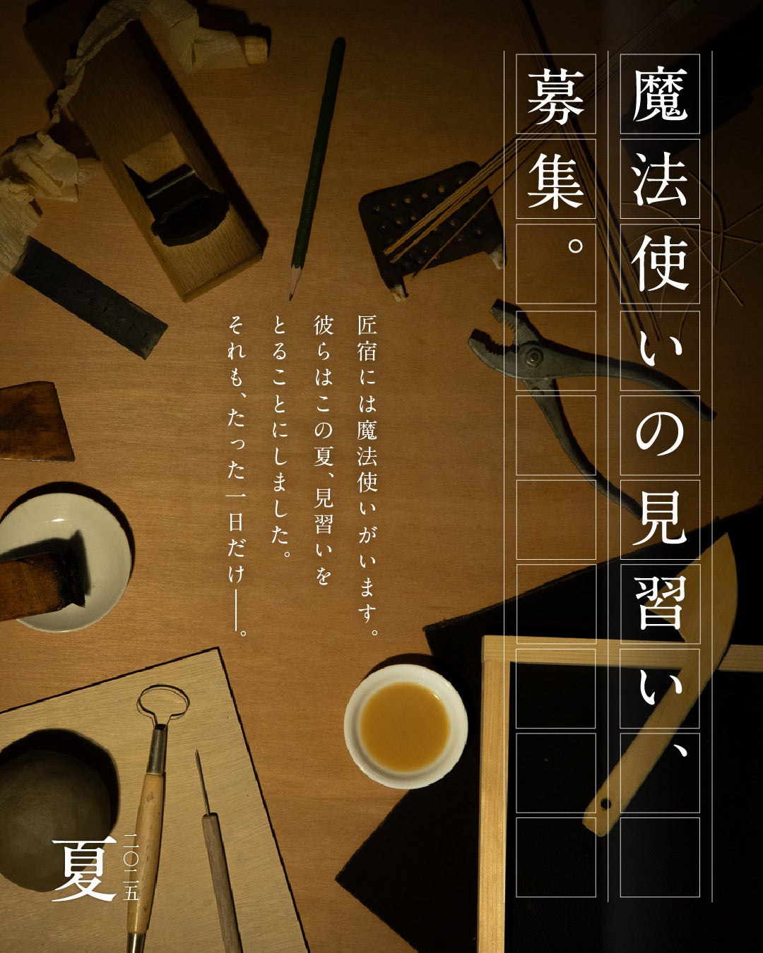 この夏、3回目の実施となる企画『魔法使いの見習い、募集。』は、5人の職人たちが1日限定で見習いをとる特別な体験。