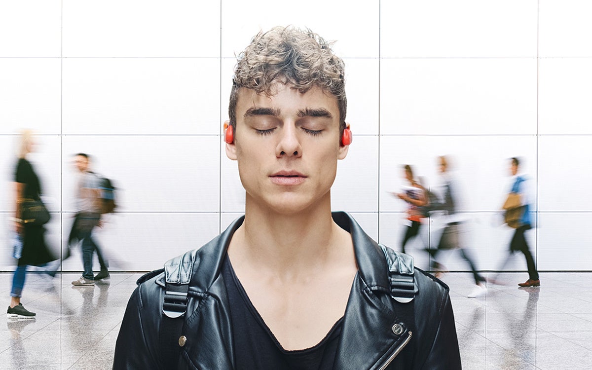 耳孔を圧迫しないため、長時間使用してもストレスを感じません。インイヤー型イヤホンに比べて聴覚へのダメージを軽減できるだけでなく、外耳を清潔に保ち、周囲の音が聞けることで安全性も確保できます。