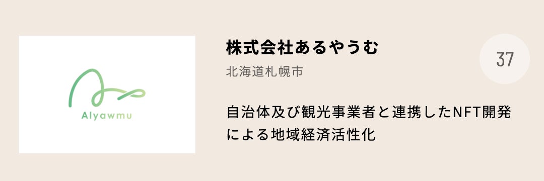 「NFTによる地方創生」を推進するため、全国の自治体向けにふるさと納税NFT/観光NFTソリューションを提供する札幌発のスタートアップ。地域の魅力をのせたNFTをふるさと納税の返礼品とすることで、新たな財源を創出すると共に、シティプロモーションや関係人口の創出に繋げます。社名「あるやうむ」はアラビア語で今日を意味する言葉。今日、いますぐチャレンジをしたい自治体・地域の皆様にNFTという先端技術を提供し、応援され続ける地域づくりを支援します。