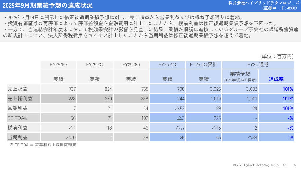 ハイブリッドテクノロジーズ 2025年9月期決算発表のお知らせ