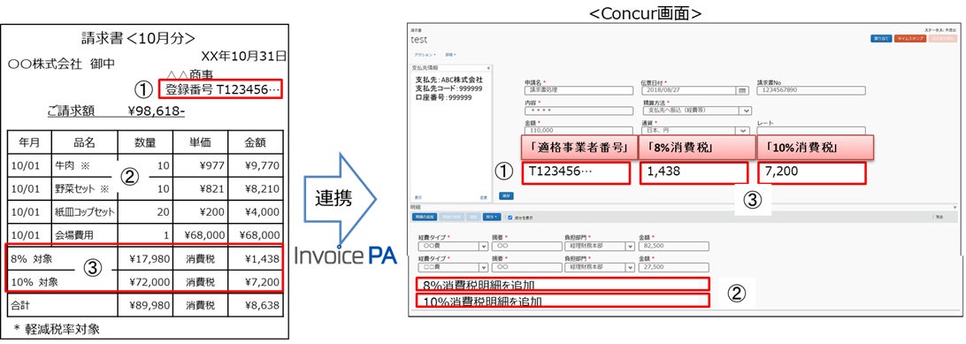 受領した請求書より下記内容を抽出し、SAP Concurへ引継ぎを行います。
