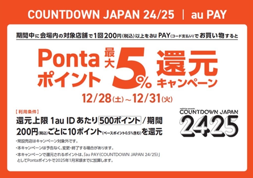 auが「COUNTDOWN JAPAN 24/25」で無料充電やau PAYの5%還元などを実施
