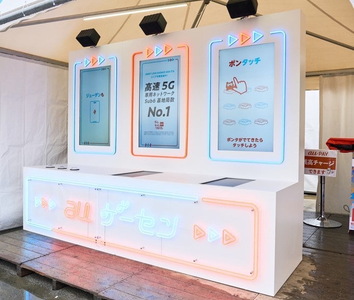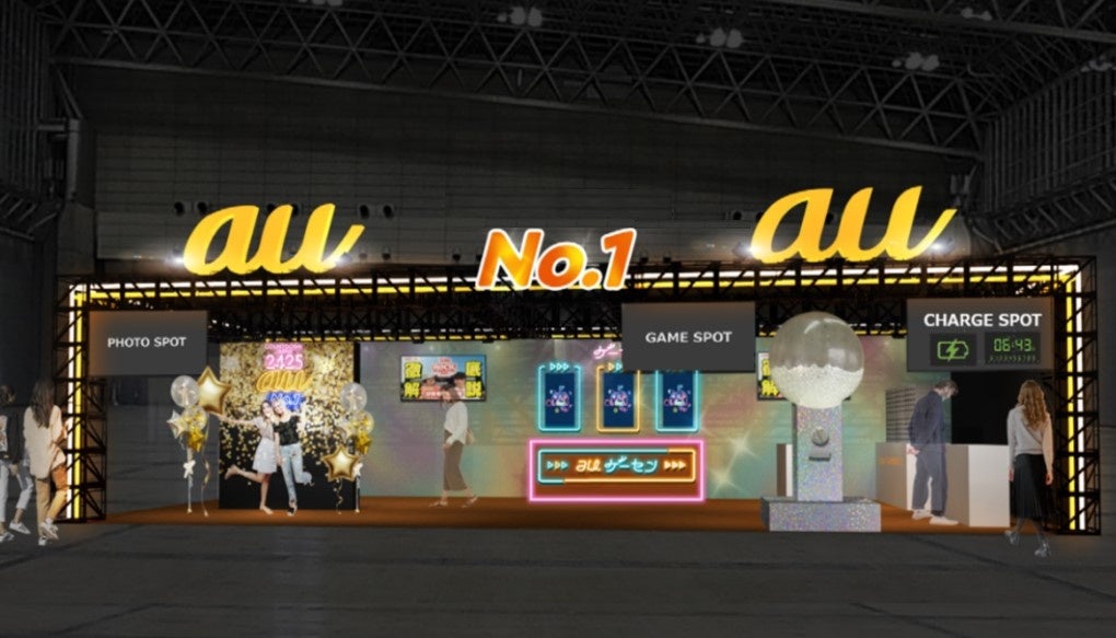 「つながる体感No.1」(注1)をテーマに、会場内を快適に過ごせる通信対策はもちろん、終日開催イベントには必要不可欠なスマートフォンの無料充電サービスや、映えるフォトスポット/ゲームスポット、グッズ売り場/飲食店におけるau PAYの5%還元などを実施します。