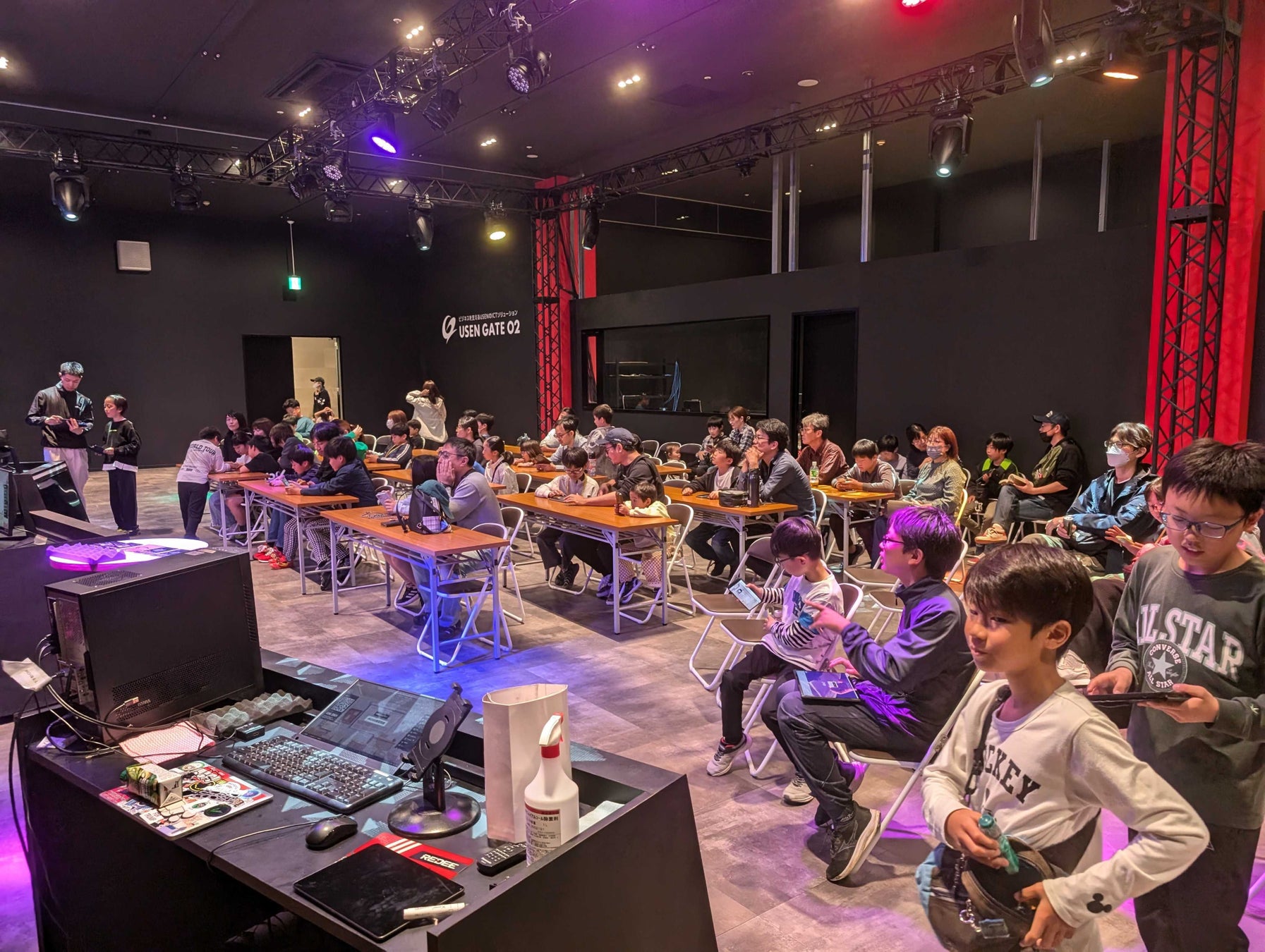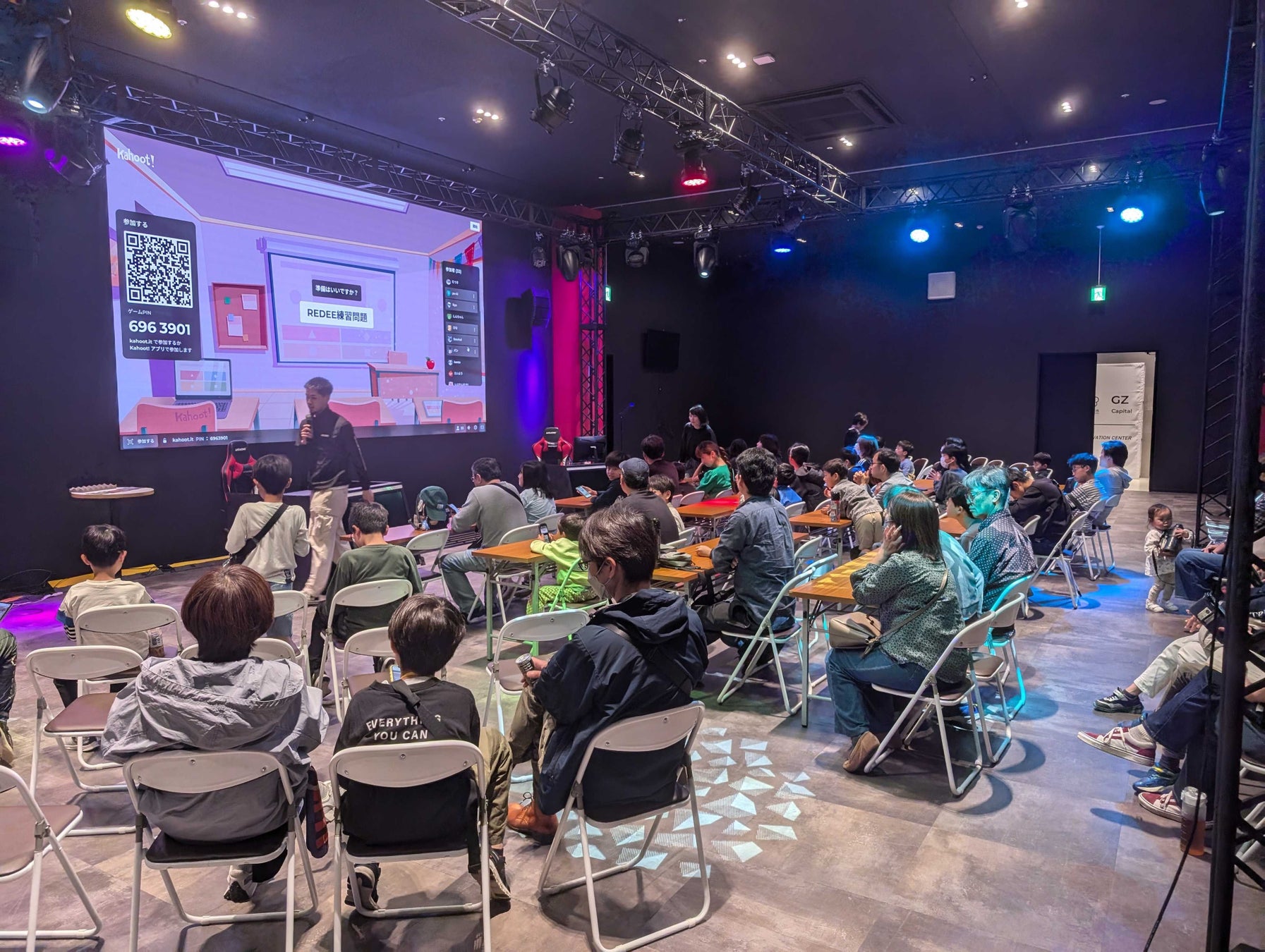 REDEEプログラミングスクールでは、毎月スクールイベントを実施しており、今回はREDEE内のスタジアムにて、「親子で学べるクイズ大会」を開催致しました。REDEEスタジアムは、200~250名収容可能かつ音響や照明環境も完備されているイベント会場です。外部の企業様や団体様にも、様々な用途でご利用頂いています。